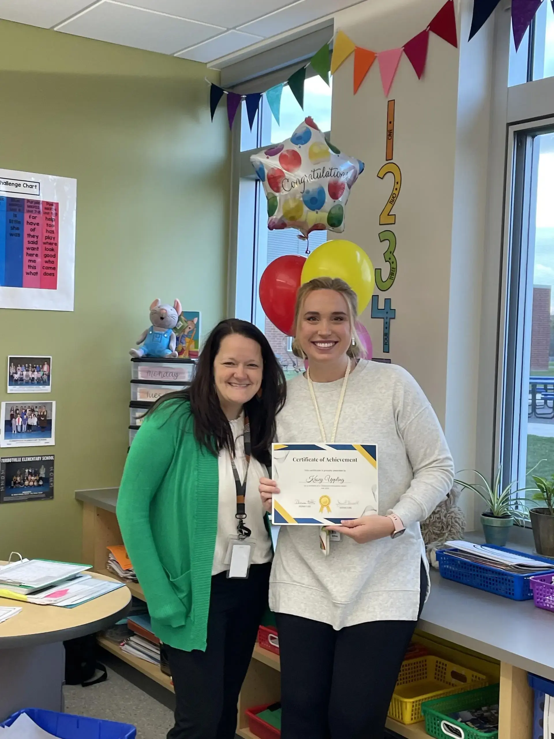 Director of C&I Theresa Bartholomew honors YAMI MELTON receiving a Foundation Grant for a Calming Corner in her counseling office.